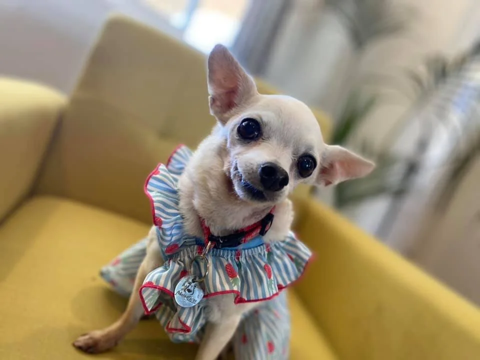 "Elsa was a frightened dog when I first bought her home. She didn't like anyone in my 75 unit apartment complex. A few months later she realized that everyone here was friendly and nice. She became everyone's favorite. Elsa made me laugh all the time. She showed me so much love. When I dressed her in outfits she would look at me as if to say "are you really going to make me wear that?". She was so quick to show love. She was smart and learned to climb her doggy stairs in no time. Loved other dog and cat pets. Loved car rides. Our last night together we went to Texas Roadhouse where she ate her very own steak.