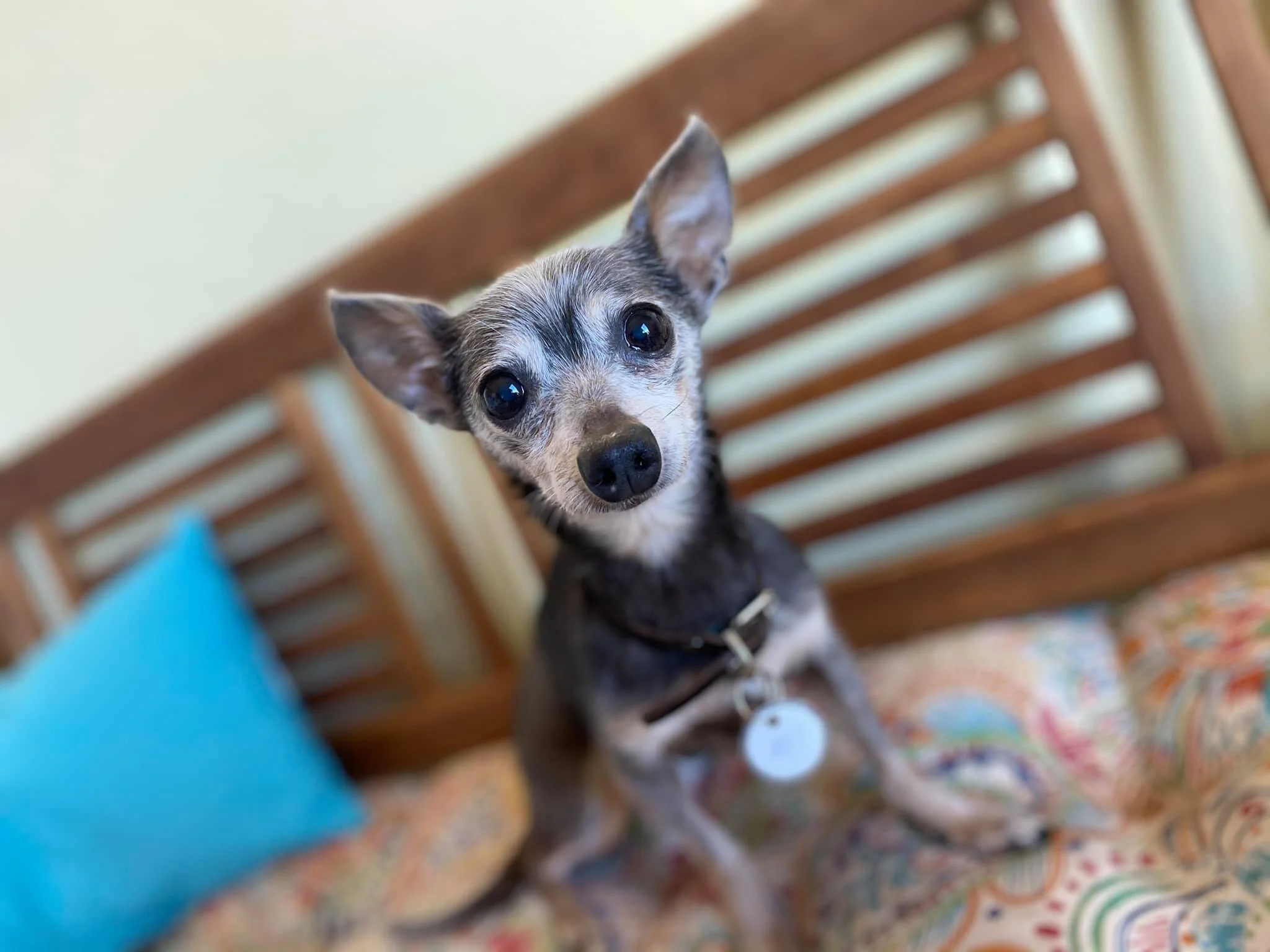 He came to FFF on December 3, 2020 from Riverside and was adopted soon after. Last May he was returned and somehow he moved me to take him home and add him to my furry family. YoYo immediately took charge. At 4 lbs he was the tiniest of my littles and one of my nicknames for him was Micro. He didn't care. He was blind and almost deaf. One of the few things he could hear was clapping, but he never figured out where the sound came from. He had heart disease and all kinds of old man issues, but he didn't let anything stop him. YoYo was absolutely fearless. He would bark in anyone's face who dared to come too close, telling them not to mess with him, no matter how big or scary they looked.